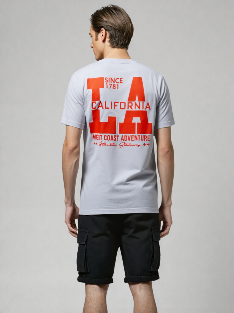 This H&M Los Angeles T-Shirt features a clean white base complemented by a vibrant orange backprint, capturing the energetic spirit of the city. Crafted for comfort and style, it pairs effortlessly with casual outfits while showcasing a bold, urban aesthetic. Ideal for those who appreciate minimalist design with a striking graphic element.